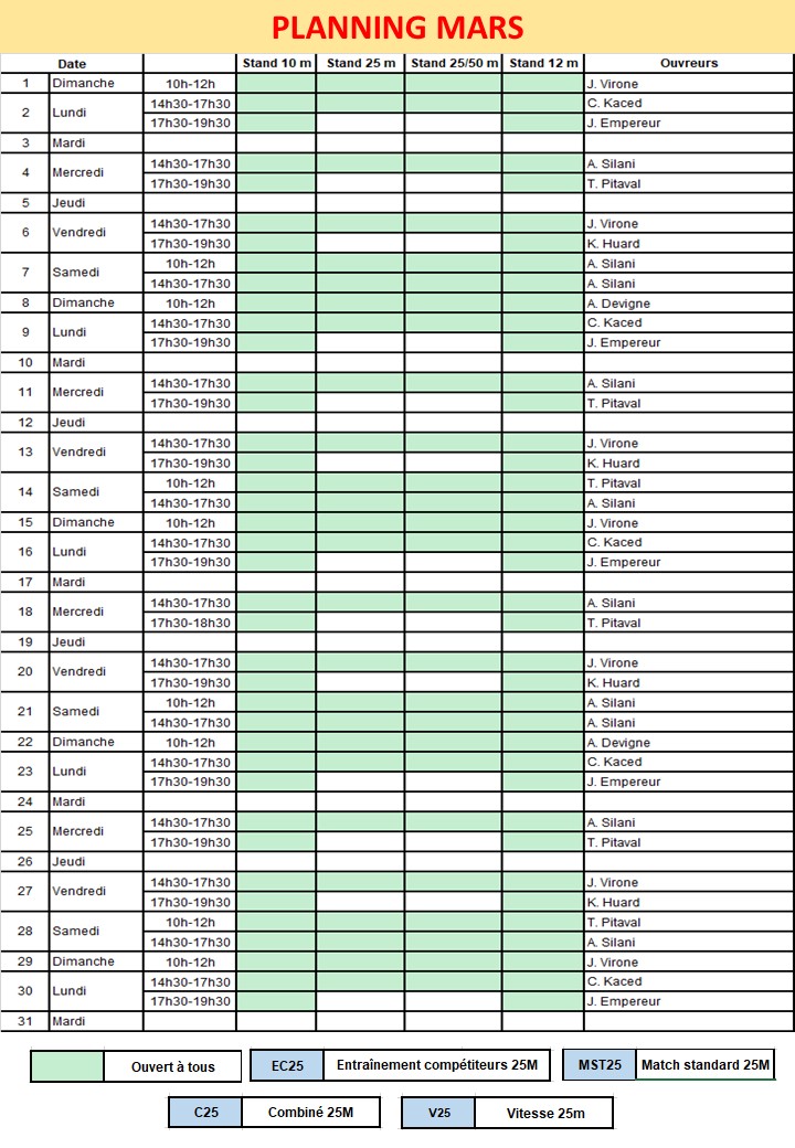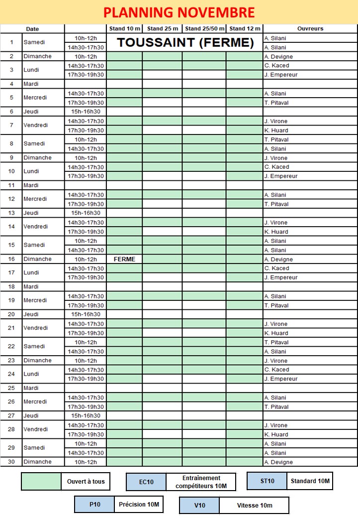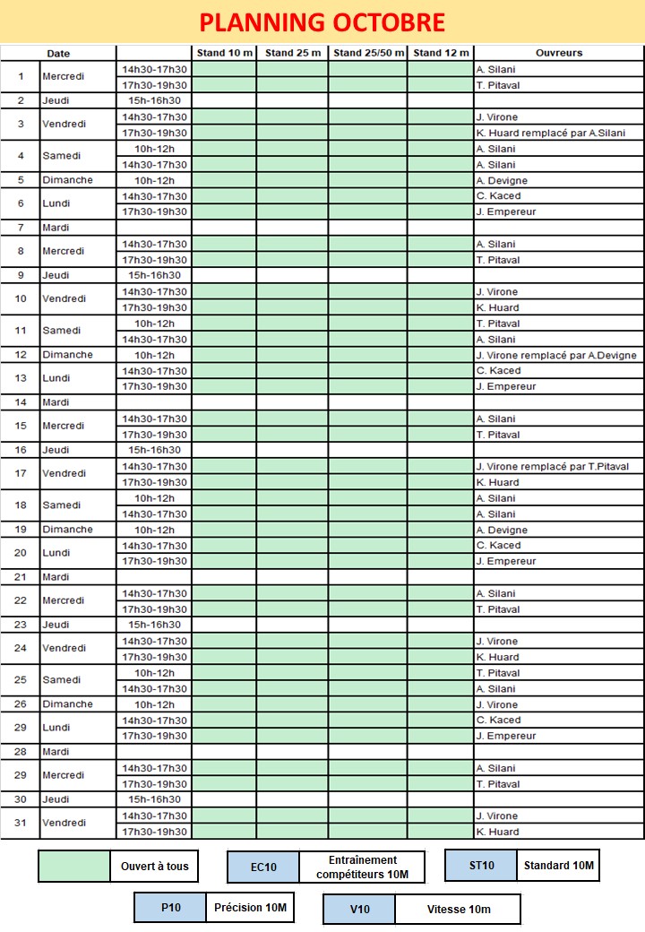 Tableau d'ouverture des installations aux adhérents de la STG pour la saison 2025/2026